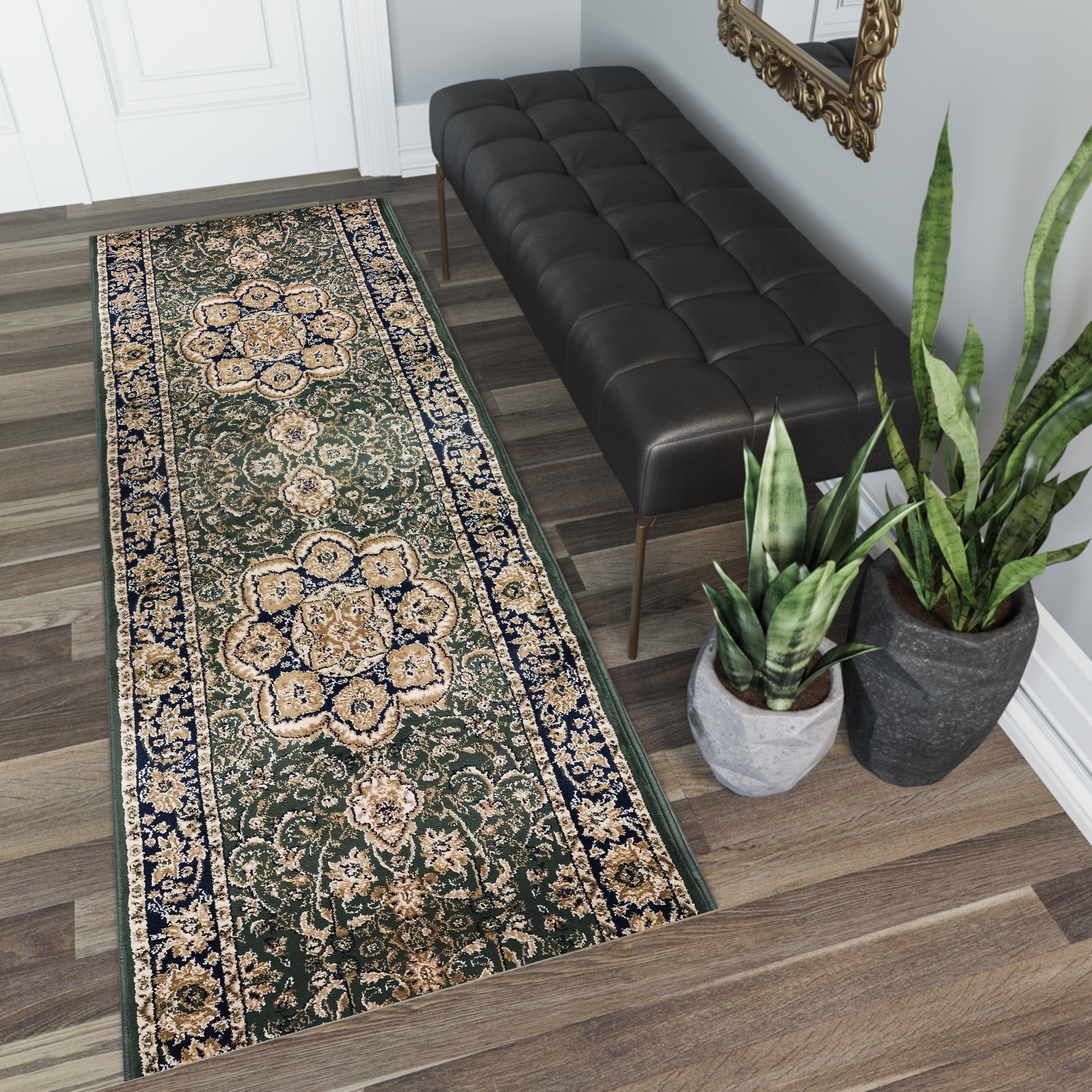 Chodnik z kolekcji ROYAL stanowi doskonałą dekorację dla wnętrz o wysokim standardzie, takich jak eleganckie salony, sypialnie oraz przedpokoje utrzymane w stylu klasycznym, glamour lub art deco. Wykonany z wysokiej jakości materiałów, charakteryzuje się odpornością na zmiany koloru, odkształcenia oraz procesy ścierania, co gwarantuje jego trwałość na wiele lat. Wyróżnia go tradycyjny wzór, podkreślony przez subtelny odcień czerwieni, nadając wnętrzu wyjątkowego charakteru. Bogate zdobienia chodnika przyciągają uwagę i stanowią wyjątkowe dzieło sztuki. Runo o wysokości 13 mm zapewnia miękkość, przyjemność w dotyku oraz długotrwałą wytrzymałość.