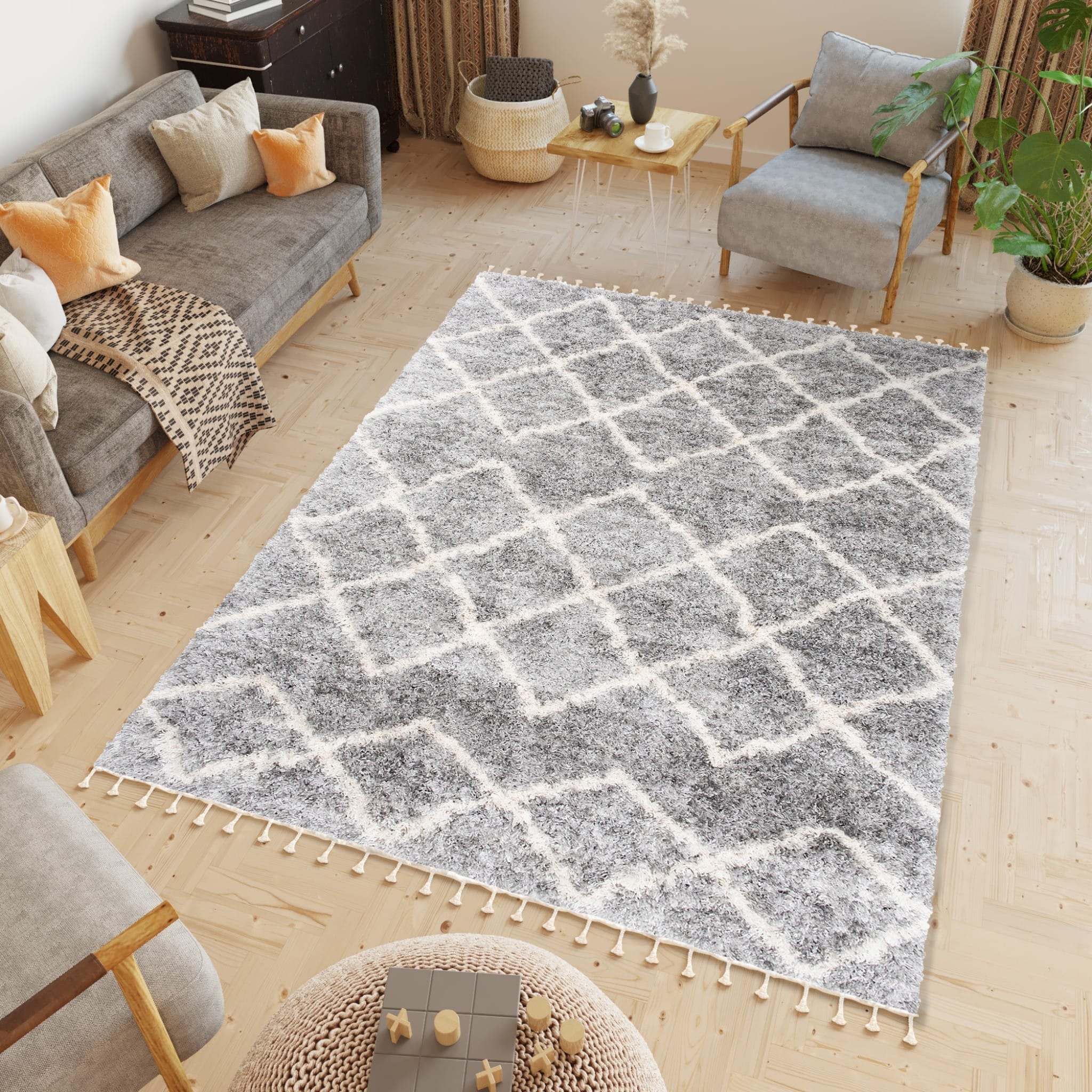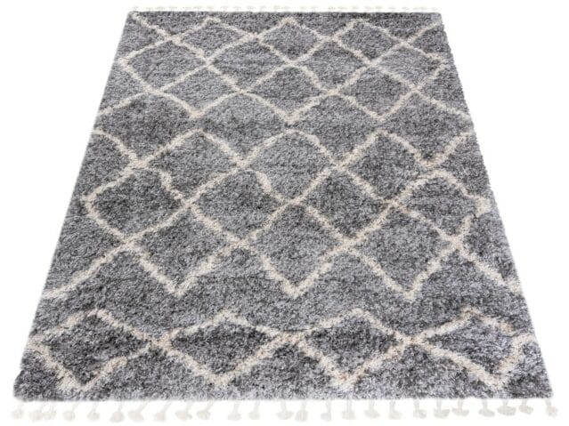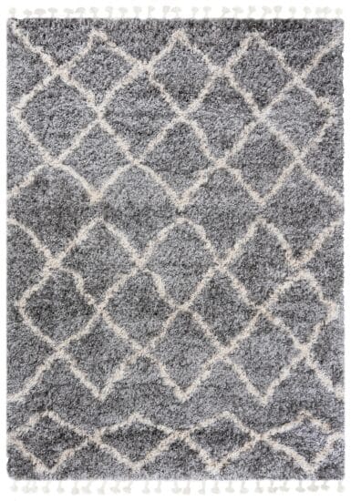 Dywan ALGIER to miękki dywan z wysokim i gęstym runem. Doskonale nadaje się do salonu, sypialni czy do pokoju dziecięcego. Runo składa się z puszystych włókien, które są wyjątkowo przyjemne w dotyku i przy tym odporne na zagniecenia. Gęstość i wysokość runa odpowiada również za jego bardzo dobre właściwości izolacyjne. Jego dodatkowym atutem jest brak elektryzowania się w trakcie użytkowania, ponieważ jego włókna wykazują właściwości antyelektrostatyczne. Dzięki technologii uszlachetnienia przez termiczną stabilizację przędzy zachowuje wytrzymałość i piękny wygląd na lata. Dywan jest łatwy do utrzymania w czystości. Można poddawać go zabiegom czyszczenia – odkurzaniu i praniu szamponami do dywanów. W kolekcji dywanów  znajduje się szeroka gama nowoczesnych i geometrycznych wzorów z efektownym ozdobnikiem w postaci frędzli.