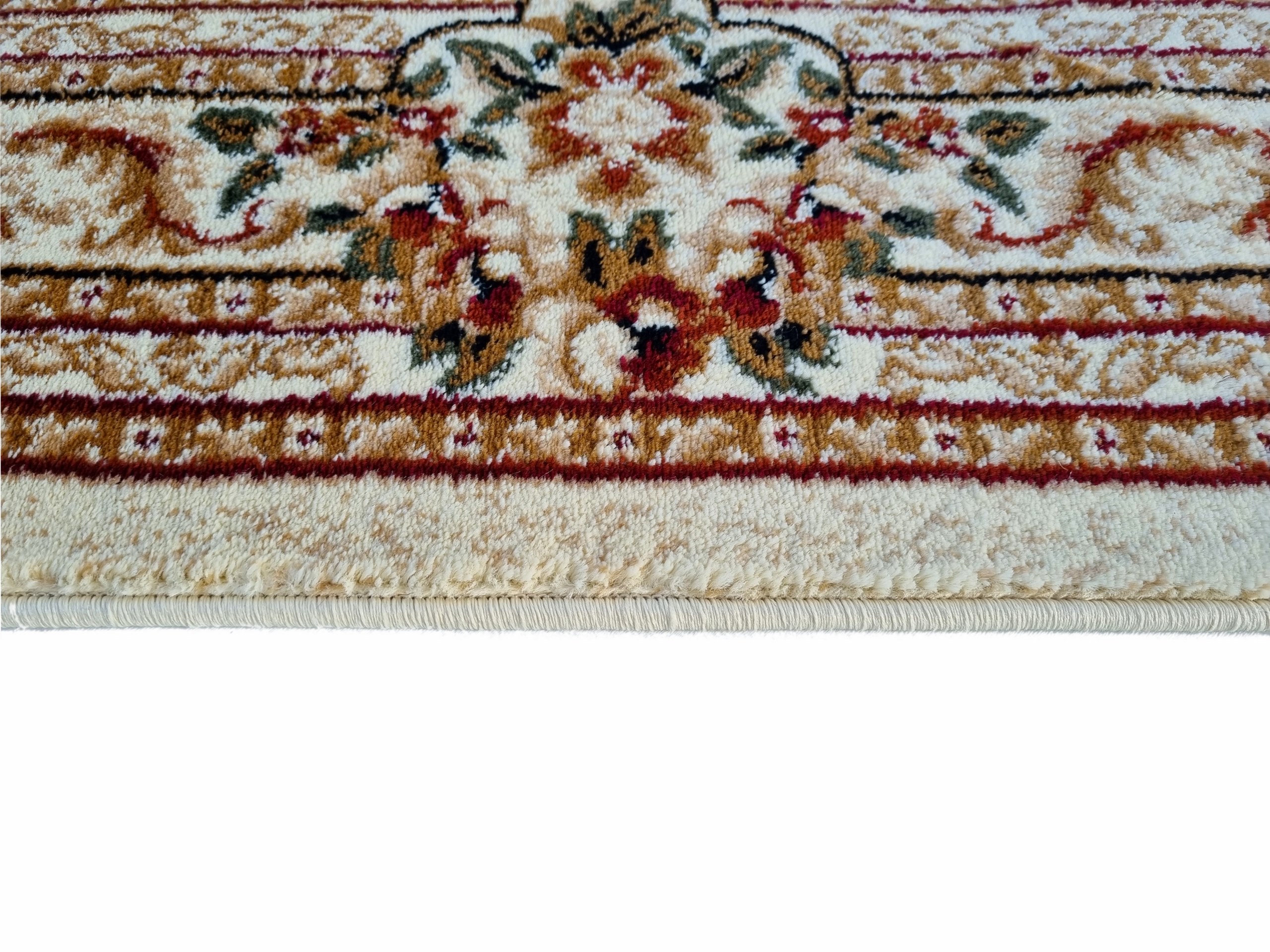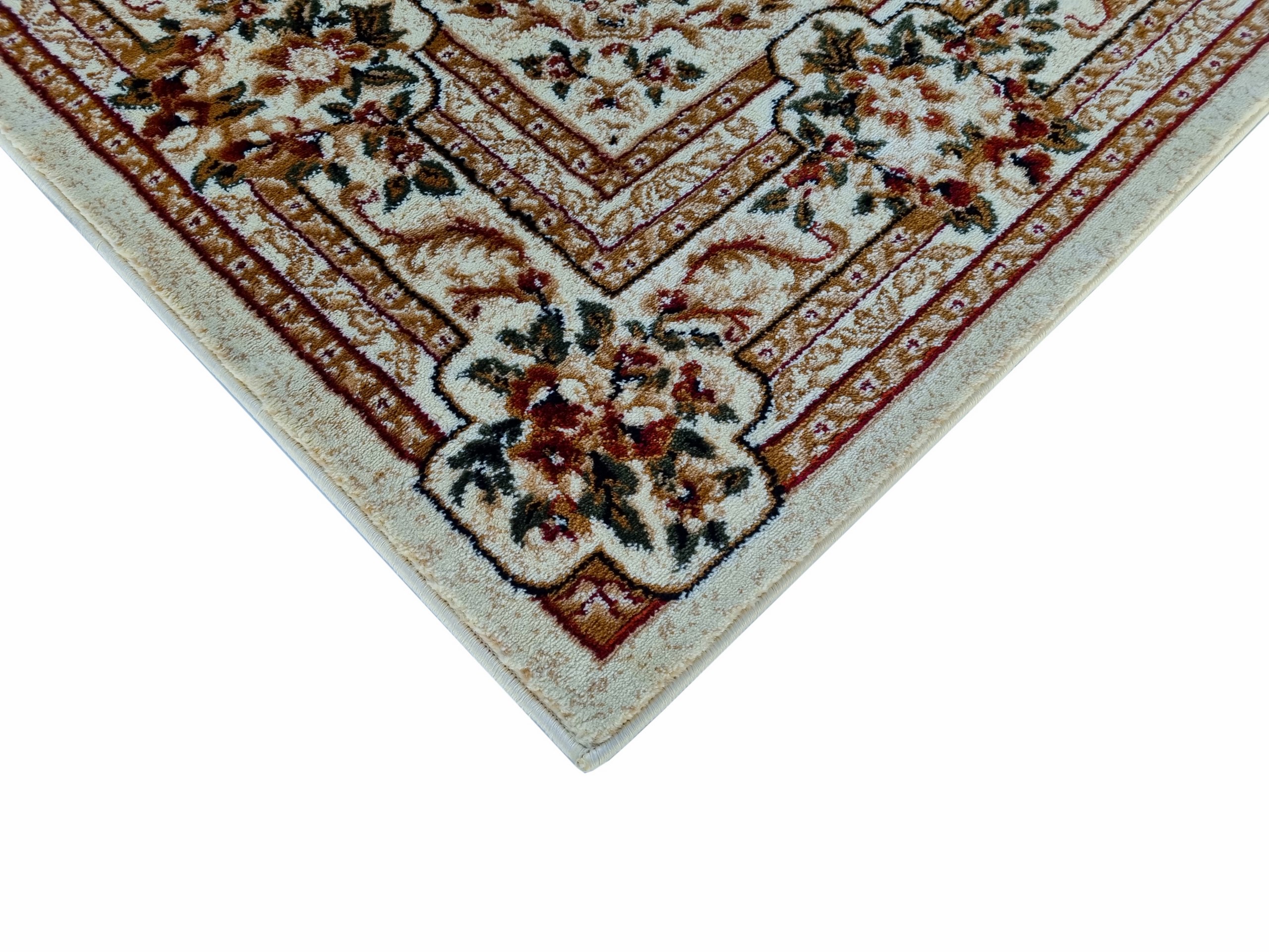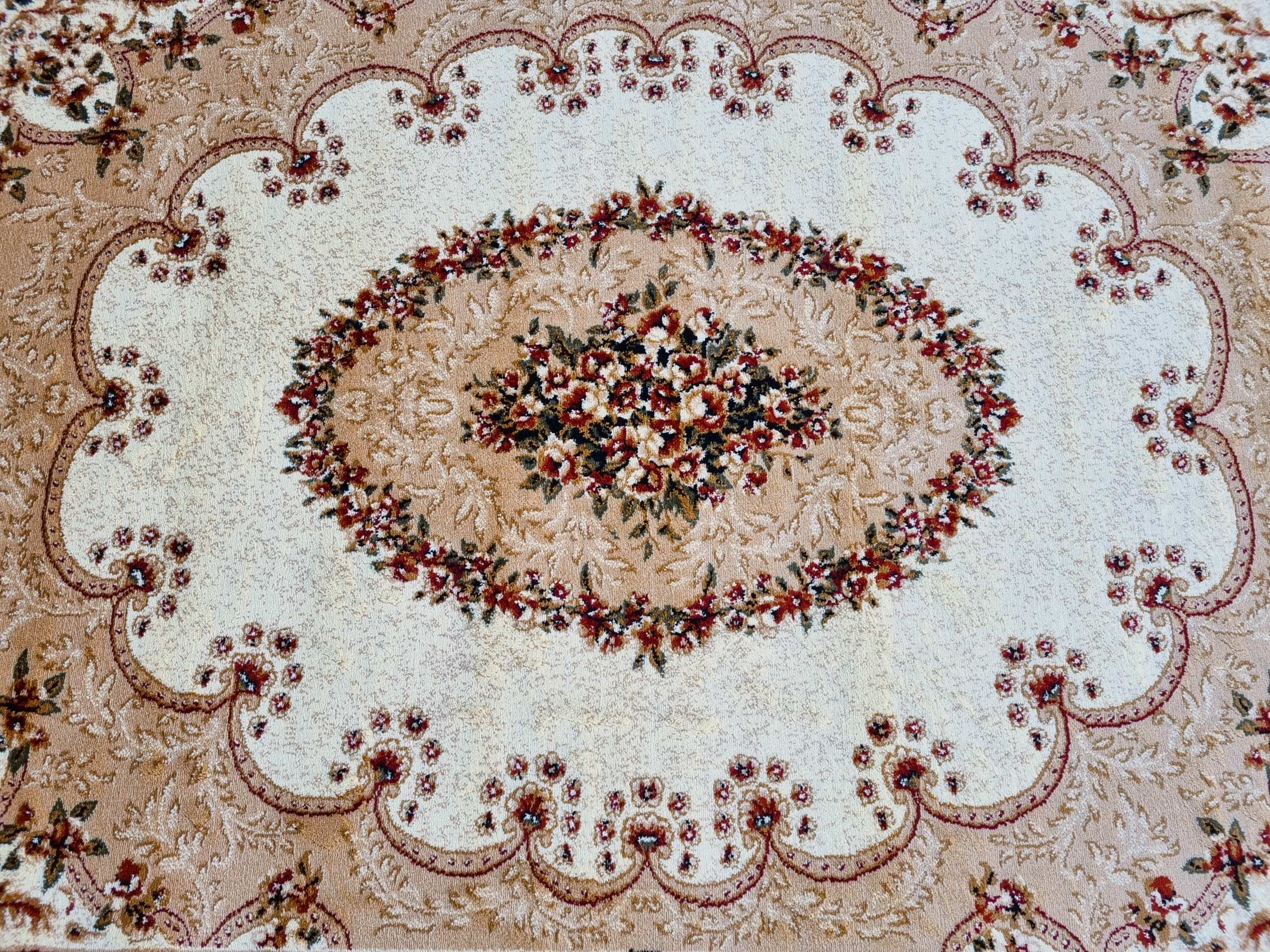 Piękny dywan o orientalnym i tureckim wzornictwie! Jego unikatowa kolorystyka dodaje mu niezwykłej dekoracyjności. Te dywany urzekają bogatym zdobieniem w postaci kwiatowych motywów i ornamentów. Są też miękkie i gęste, co sprawia, że doskonale komponują się z klasycznym wystrojem wnętrz, zwłaszcza z solidnymi meblami drewnianymi. Ten konkretny turecki dywan został wykonany z wykorzystaniem techniki Heat–Set. Do produkcji użyto wysokiej jakości przędzy polipropylenowej, którą poddano termicznej stabilizacji. Dzięki temu jest niezwykle miękki w dotyku, a jego runo jest gęste, przypominając wełniany dywan. Dodatkowo, posiada właściwości antyelektrostatyczne, izolujące termicznie i akustycznie. Łatwy w utrzymaniu czystości – można go odkurzać i prać specjalnymi szamponami dedykowanymi do dywanów. To wyjątkowy dywan, który zachowuje wysoką wytrzymałość, trwałość i odporność na zagniecenia, pozostając piękną ozdobą Twojego pokoju przez wiele lat.