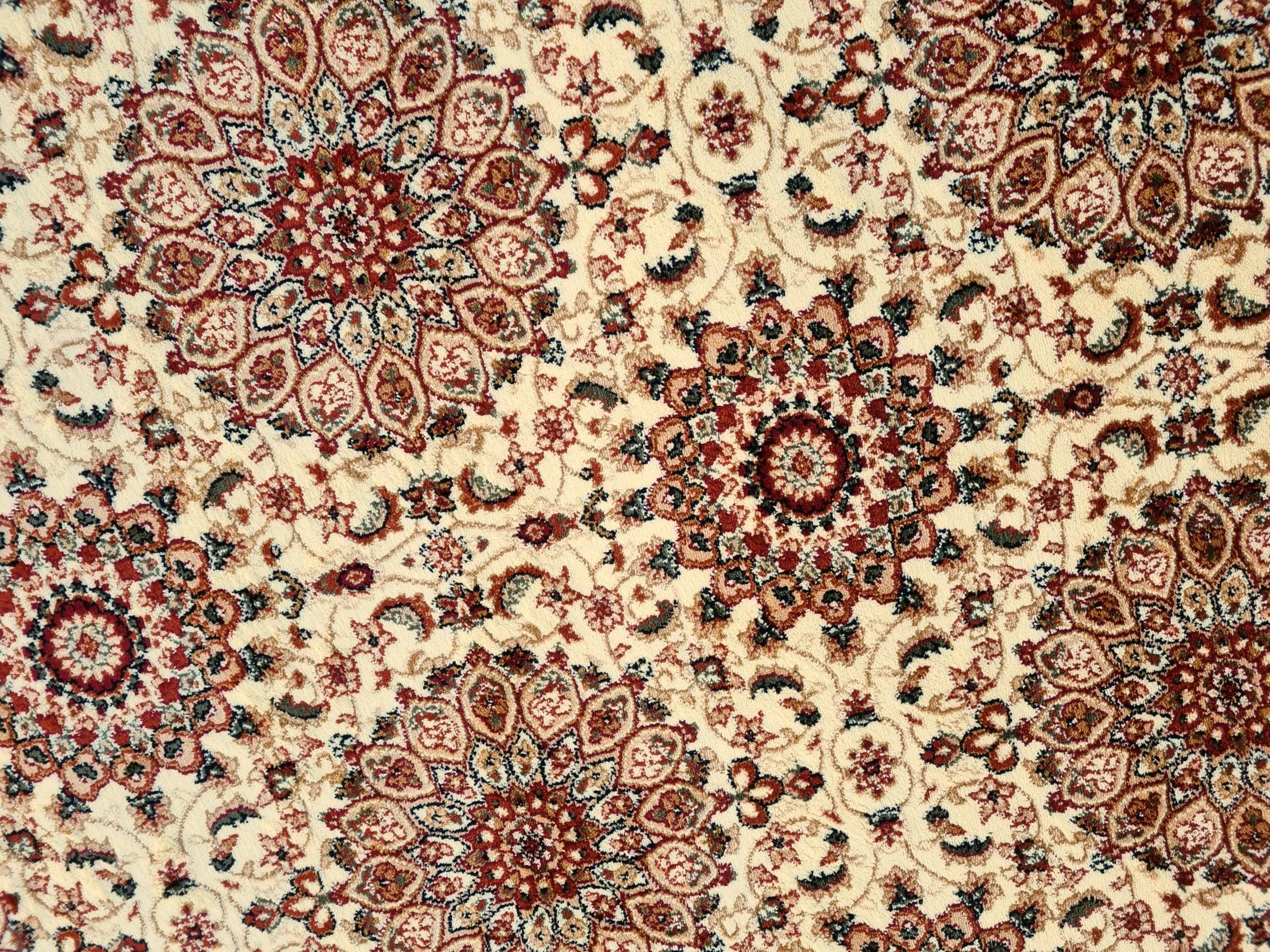 Piękny dywan o orientalnym i tureckim wzornictwie! Jego unikatowa kolorystyka dodaje mu niezwykłej dekoracyjności. Te dywany urzekają bogatym zdobieniem w postaci kwiatowych motywów i ornamentów. Są też miękkie i gęste, co sprawia, że doskonale komponują się z klasycznym wystrojem wnętrz, zwłaszcza z solidnymi meblami drewnianymi. Ten konkretny turecki dywan został wykonany z wykorzystaniem techniki HeatSet. Do produkcji użyto wysokiej jakości przędzy polipropylenowej, którą poddano termicznej stabilizacji. Dzięki temu jest niezwykle miękki w dotyku, a jego runo jest gęste, przypominając wełniany dywan. Dodatkowo, posiada właściwości antyelektrostatyczne, izolujące termicznie i akustycznie. Łatwy w utrzymaniu czystości – można go odkurzać i prać specjalnymi szamponami dedykowanymi do dywanów. To wyjątkowy dywan, który zachowuje wysoką wytrzymałość, trwałość i odporność na zagniecenia, pozostając piękną ozdobą Twojego pokoju przez wiele lat.