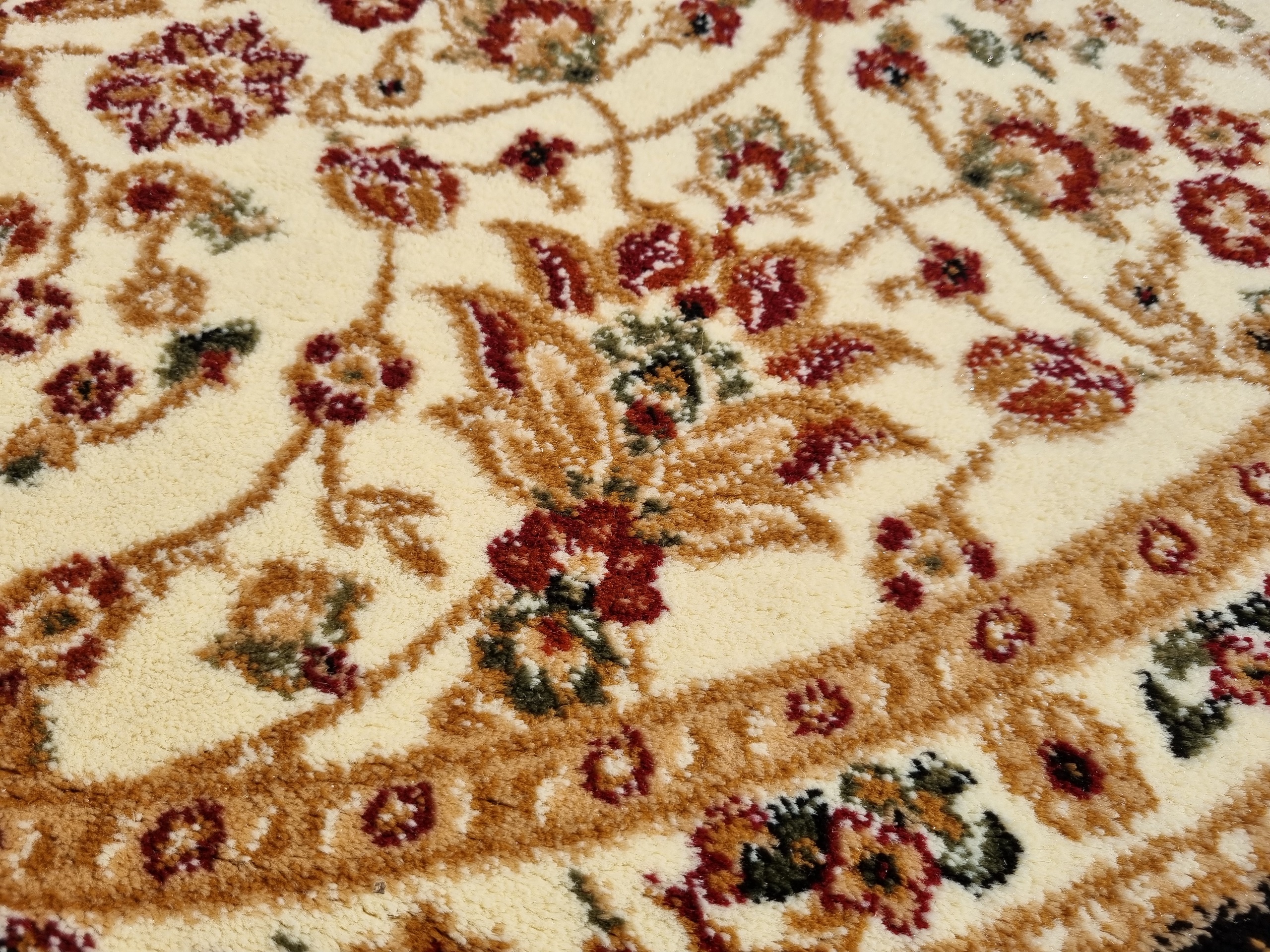 Piękny dywan o orientalnym i tureckim wzornictwie! Jego unikatowa kolorystyka dodaje mu niezwykłej dekoracyjności. Te dywany urzekają bogatym zdobieniem w postaci kwiatowych motywów i ornamentów. Są też miękkie i gęste, co sprawia, że doskonale komponują się z klasycznym wystrojem wnętrz, zwłaszcza z solidnymi meblami drewnianymi. Ten konkretny turecki dywan został wykonany z wykorzystaniem techniki HeatSet. Do produkcji użyto wysokiej jakości przędzy polipropylenowej, którą poddano termicznej stabilizacji. Dzięki temu jest niezwykle miękki w dotyku, a jego runo jest gęste, przypominając wełniany dywan. Dodatkowo, posiada właściwości antyelektrostatyczne, izolujące termicznie i akustycznie. Łatwy w utrzymaniu czystości – można go odkurzać i prać specjalnymi szamponami dedykowanymi do dywanów. To wyjątkowy dywan, który zachowuje wysoką wytrzymałość, trwałość i odporność na zagniecenia, pozostając piękną ozdobą Twojego pokoju przez wiele lat.