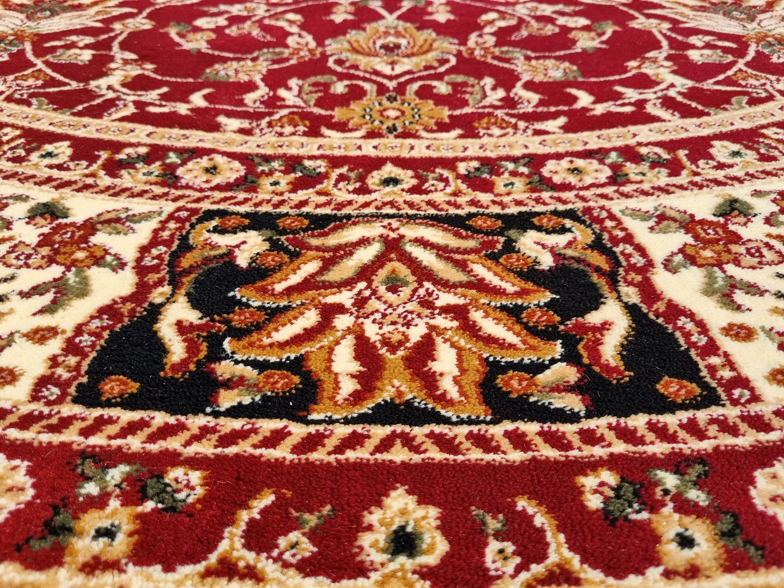 Piękny dywan o orientalnym i tureckim wzornictwie! Jego unikatowa kolorystyka dodaje mu niezwykłej dekoracyjności. Te dywany urzekają bogatym zdobieniem w postaci kwiatowych motywów i ornamentów. Są też miękkie i gęste, co sprawia, że doskonale komponują się z klasycznym wystrojem wnętrz, zwłaszcza z solidnymi meblami drewnianymi. Ten konkretny turecki dywan został wykonany z wykorzystaniem techniki HeatSet. Do produkcji użyto wysokiej jakości przędzy polipropylenowej, którą poddano termicznej stabilizacji. Dzięki temu jest niezwykle miękki w dotyku, a jego runo jest gęste, przypominając wełniany dywan. Dodatkowo, posiada właściwości antyelektrostatyczne, izolujące termicznie i akustycznie. Łatwy w utrzymaniu czystości – można go odkurzać i prać specjalnymi szamponami dedykowanymi do dywanów. To wyjątkowy dywan, który zachowuje wysoką wytrzymałość, trwałość i odporność na zagniecenia, pozostając piękną ozdobą Twojego pokoju przez wiele lat.
