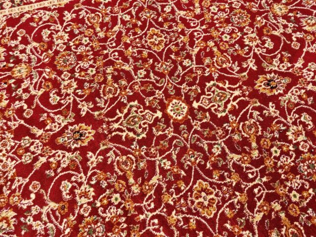 Piękny dywan o orientalnym i tureckim wzornictwie! Jego unikatowa kolorystyka dodaje mu niezwykłej dekoracyjności. Te dywany urzekają bogatym zdobieniem w postaci kwiatowych motywów i ornamentów. Są też miękkie i gęste, co sprawia, że doskonale komponują się z klasycznym wystrojem wnętrz, zwłaszcza z solidnymi meblami drewnianymi. Ten konkretny turecki dywan został wykonany z wykorzystaniem techniki HeatSet. Do produkcji użyto wysokiej jakości przędzy polipropylenowej, którą poddano termicznej stabilizacji. Dzięki temu jest niezwykle miękki w dotyku, a jego runo jest gęste, przypominając wełniany dywan. Dodatkowo, posiada właściwości antyelektrostatyczne, izolujące termicznie i akustycznie. Łatwy w utrzymaniu czystości – można go odkurzać i prać specjalnymi szamponami dedykowanymi do dywanów. To wyjątkowy dywan, który zachowuje wysoką wytrzymałość, trwałość i odporność na zagniecenia, pozostając piękną ozdobą Twojego pokoju przez wiele lat.