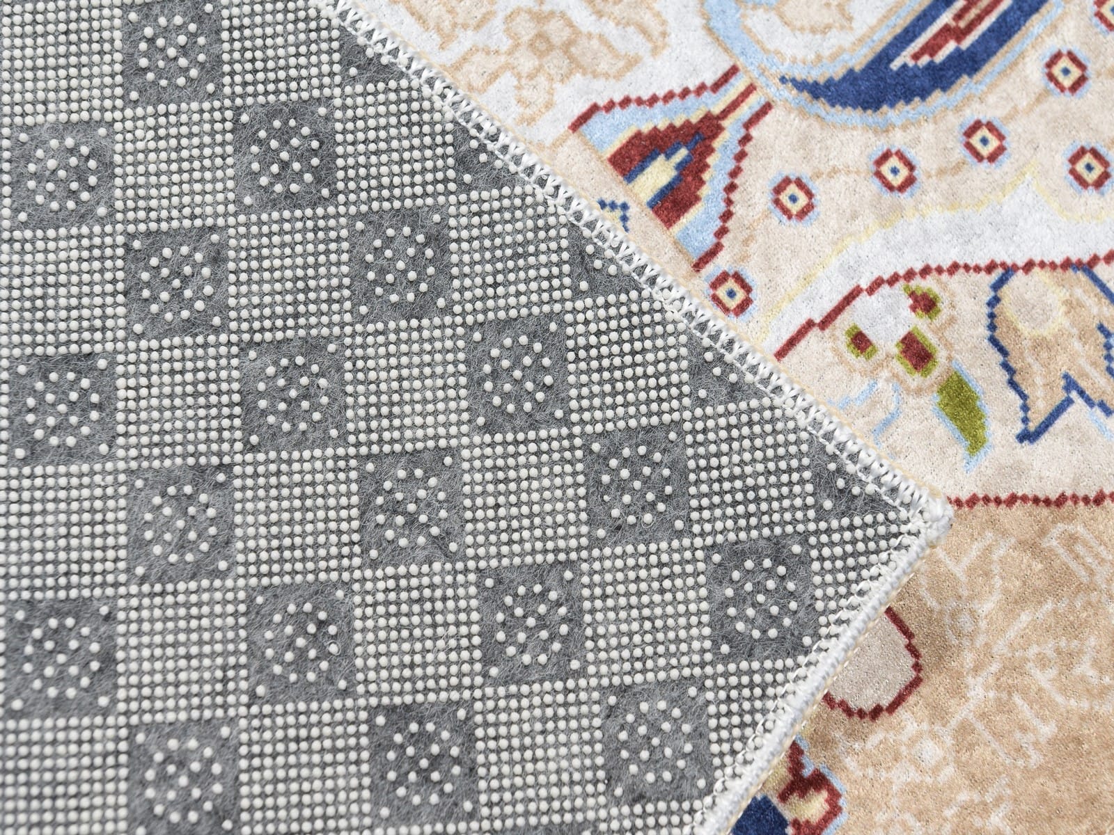 Dodatkowo, antypoślizgowa powłoka na spodzie zapewnia stabilność i bezpieczeństwo. Dywan VEETI to doskonałe połączenie nowoczesnego designu, trwałości i komfortu użytkowania – wybór, który spełni Twoje oczekiwania!