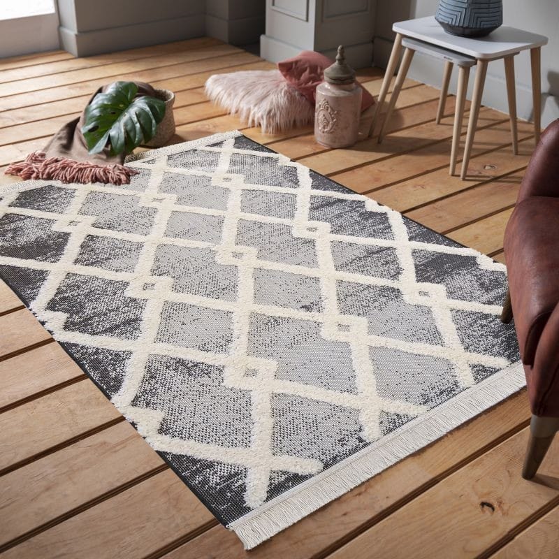 DUBLIN posiadają Certyfikat OECO-TEX, który świadczy o braku szkodliwych substancji dla zdrowia. Modny dywan sznurkowy DUBLIN zachwyca ponadczasowym geometrycznym wzorem, który został podkreślony naturalnymi barwami. Bez problemu dopasuje się go do każdego stylu i do każdego wnętrza. Dywan prócz niezaprzeczalnych walorów estetycznych jest również niezwykle uniwersalny. To doskonała propozycja jako dekoracja do domu, ale i na zewnątrz. Dywan pomoże stworzyć Ci przytulny kącik na tarasie czy balkonie ponieważ cechuje się on również odpornością na warunki atmosferyczne. Na uwagę zasługuje również jego wzór typu shaggy, naniesiony metodą wyżej – niżej. Dywan DUBLIN wykonany został z materiałów wysokiej jakości, materiałów odpornych na wszelkiego rodzaju odkształcenia, blaknięcia, czy procesy ścierania. Ten modny dywan sznurkowy nie posiada runa dywanowego – powstał przez przeciąganie między sobą włókien wątku i osnowy, dlatego jest doskonałą propozycją na dekorację jeśli w domu mamy alergika. Brud nie wnika we włókna dywanu tylko osiada na nim, tak więc utrzymanie go w czystości jest bajecznie proste. Nowoczesne dywany z kolekcji