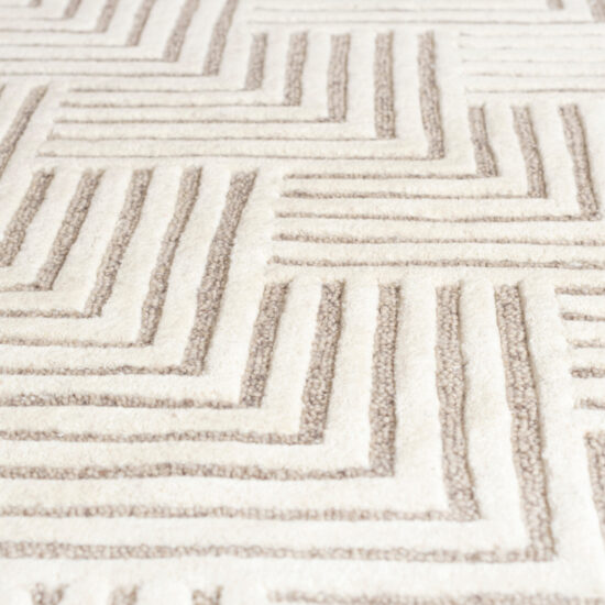 Dywan z linii ekskluzywnych dywanów wełnianych, wyróżniający się współczesnym wzorem oraz niezwykłą precyzją ręcznego tkania. Jego unikalny design doskonale łączy elegancję z nowoczesnością. Został wyprodukowany z najwyższej jakości wełny, co sprawia, że emanuje luksusem, a staranne, ręczne tkanie podkreśla szczególną dbałość o detale.