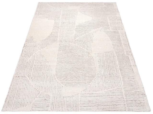 Dywan z linii ekskluzywnych dywanów wełnianych, wyróżniający się współczesnym wzorem oraz niezwykłą precyzją ręcznego tkania. Jego unikalny design doskonale łączy elegancję z nowoczesnością. Został wyprodukowany z najwyższej jakości wełny, co sprawia, że emanuje luksusem, a staranne, ręczne tkanie podkreśla szczególną dbałość o detale.