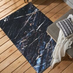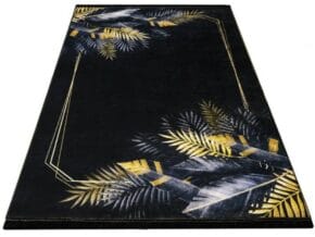 - Pomieszczenia łazienkowe glamour to wnętrza, kojarzące się z luksusowym spa. Tutaj zalecamy rozważać dywany, utrzymane w kolorystyce czerni, złota i butelkowej zieleni. Wzory na dywanie możesz dobrać kolorystycznie np. do fantazyjnych baterii nad umywalką i wanną, wieszaków czy akcesoriów. A może motyw, imitujący czarny marmur z charakterystycznymi pęknięciami?