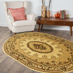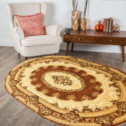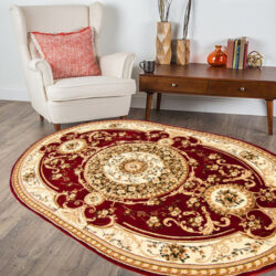 Dywany owalne w stylu klasycznym dostępne w naszym sklepie są wykonane z wysokiej jakości materiałów, co nadaje im wyjątkowej trwałości i miękkości. Ich eleganckie wzory i stonowane kolory dodają pomieszczeniu wyrafinowania i klasy. Dywany te świetnie komponują się z meblami o klasycznym designie, takimi jak antyczne stoły czy ozdobne fotele. Stanowią również doskonałe tło dla innych elementów dekoracyjnych, takich jak kryształowe żyrandole czy obrazy w ramach.