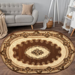 - dostępnością w wielu formach: od prostokątnych dywanów retro, poprzez te owalne i okrągłe, po modele z frędzlami.