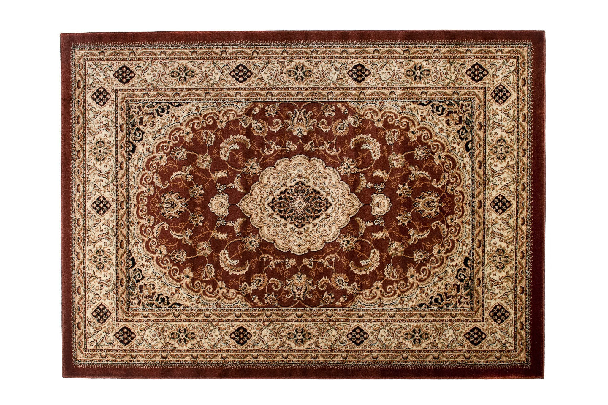 Dywany orientalne i dywany tureckie wyróżniają się głównie obfitym zdobieniem motywami florystycznymi i ornamentami i gęstym, miękkim i krótkim runem. Pasują idealnie do wnętrz urządzonych w klasycznym stylu – świetnie prezentują się zwłaszcza z masywnymi meblami drewnianymi. Turecki Dywan Orient 6666f brown został wykonany w technice Heat-Set i posiada ręcznie wycinany wzór trójwymiarowy. Do jego produkcji wykorzystano wysokiej jakości przędzę polipropylenową poddaną uszlachetnieniu przez termiczną stabilizację. Włókna wyróżniają się wyjątkową miękkością, runo jest gęste, dlatego dywan ten do złudzenia przypomina wełniany. Nie elektryzuje się, ma właściwości izolujące – akustyczne i termiczne, można łatwo czyścić go przez odkurzanie i pranie szamponami przeznaczonymi do dywanów. Jednocześnie zachowuje wysoką wytrzymałość, trwałość i odporność na zagniecenia, dlatego będzie przez długi czas ozdobą pokoju.